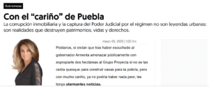 “Armenta, cómo te atreviste a designar a Víctor Gabriel Chedraui, implicado directamente en este entramado, como responsable de regular el mercado inmobiliario desde la Secretaría de Desarrollo Económico y Trabajo o ¿será que justo están buscando implementar este tipo de negocios? Premiando a funcionarios implicados en casos de despojo no están mandando el mejor mensaje a los ciudadanos e inversionistas.” Señaló la periodista.