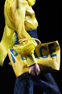 Más recientemente, durante la Mercedes-Benz Fashion Week Madrid 2022, varias casas de moda ibéricas incluyeron diseños y narrativas en apoyo a la comunidad ucraniana tras la invasión de 2022, integrando bordados con colores de la bandera, mensajes de paz y apoyos claros a la causa humanitaria. No era moda neutralizada: era moda con postura, con declaración, con moral visual.
