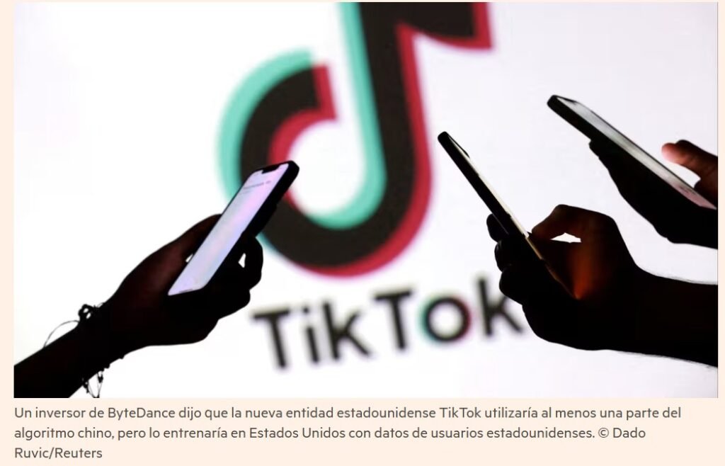 Un inversor de ByteDance con sede en Asia dijo que la nueva entidad estadounidense TikTok utilizaría al menos parte del algoritmo chino, pero lo entrenaría en Estados Unidos con datos de usuarios estadounidenses.
