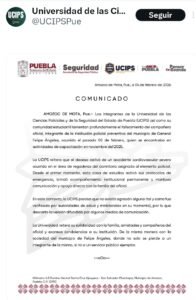 La Universidad de las Ciencias Policiales y de la Seguridad del Estado de Puebla (UCIPS) y la Secretaría de Seguridad Pública (SSP) aclararon de manera conjunta las circunstancias del fallecimiento de un elemento de la Policía Municipal de General Felipe Ángeles, ocurrido el pasado 2 de febrero, y descartaron de forma categórica que el hecho estuviera relacionado con una agresión, golpiza o presunta novatada.