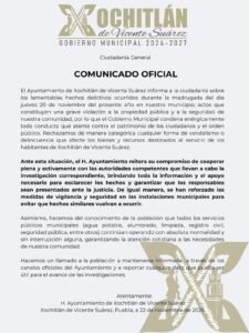 Xochitlán arde: el mismo día desapareció una patrulla y fue robada una caja fuerte dentro del Palacio Municipal.