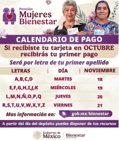 Ciudad de México. — Durante la conferencia matutina de este lunes, la titular de la Secretaría de Bienestar, Ariadna Montiel, dio a conocer el calendario oficial de pagos de noviembre para las nuevas beneficiarias de la Pensión Mujeres Bienestar, correspondiente a mujeres de 60 a 62 años que completaron su registro en agosto y recibieron su tarjeta del Banco del Bienestar durante el mes de octubre.