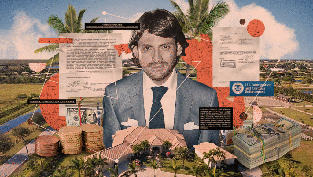 La relación con Chogui trasciende fronteras. En México, este hombre aparece en las listas de pago de la facturera Gupea Construcciones, que le transfirió 169.120 pesos. Además, la Secretaría de Hacienda lo identifica como apoderado de la firma Acción y Evolución, S.A. de C.V., que reporta pérdidas millonarias al fisco para evitar el pago de impuestos. Otro de los vínculos en EE UU es Andrea Morán, cuñada de Álvarez Puga. En 2022, el letrado y su esposa enfrentaron una demanda civil por la hipoteca de una mansión en el exclusivo vecindario Town & Ranch Estates, condado de Miami. Gómez Mont adquirió ese inmueble en 2021 a través de una firma fachada. En 2023, la transfirió a la compañía JBL Global Properties Corp., que preside Andrea Morán, esposa de Alejandro Álvarez Puga.