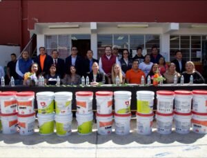 Puebla, Pue. — La secretaria de Bienestar del estado, Laura Artemisa García Chávez, encabezó la entrega de material para el mejoramiento de espacios educativos en la Primaria Leona Vicario, ubicada en la junta auxiliar de San Jerónimo Caleras, como parte de las acciones orientadas a fortalecer entornos escolares seguros y funcionales.