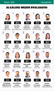 El ranking se basa en evaluaciones periódicas realizadas en las principales ciudades de México para medir la aprobación ciudadana hacia los gobiernos municipales.